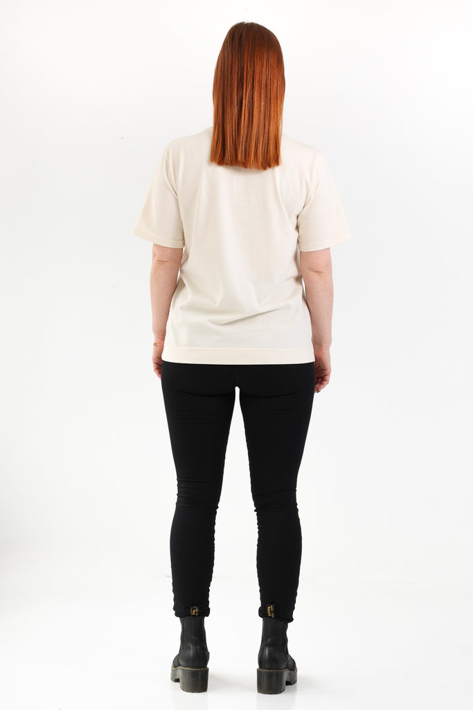 Täysin Suomessa suunniteltu ja ommeltu T-paita. Laadukas ja kestävä kangas on sekin kudottu Suomessa. Tämä T-paita on kaikkea muuta kuin pikamuotia! Malliltaan paita on trendikkään boximainen ja istuvuus normaali. Helmassa leveä käänne. Sävynä luonnollinen puuvillan beige.
